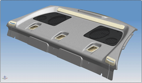A company in the automotive industry needed tooling completed for the rear window trim and shelf of an automobile. Snider Mold Company was contracted to employ our state-of-the-art compression tooling with in-mold periphery trim to complete the task. We also built the secondary trim die for optional hydraulic actuated speaker configurations after the molding, demonstrating our advanced equipment and our company's versatility.